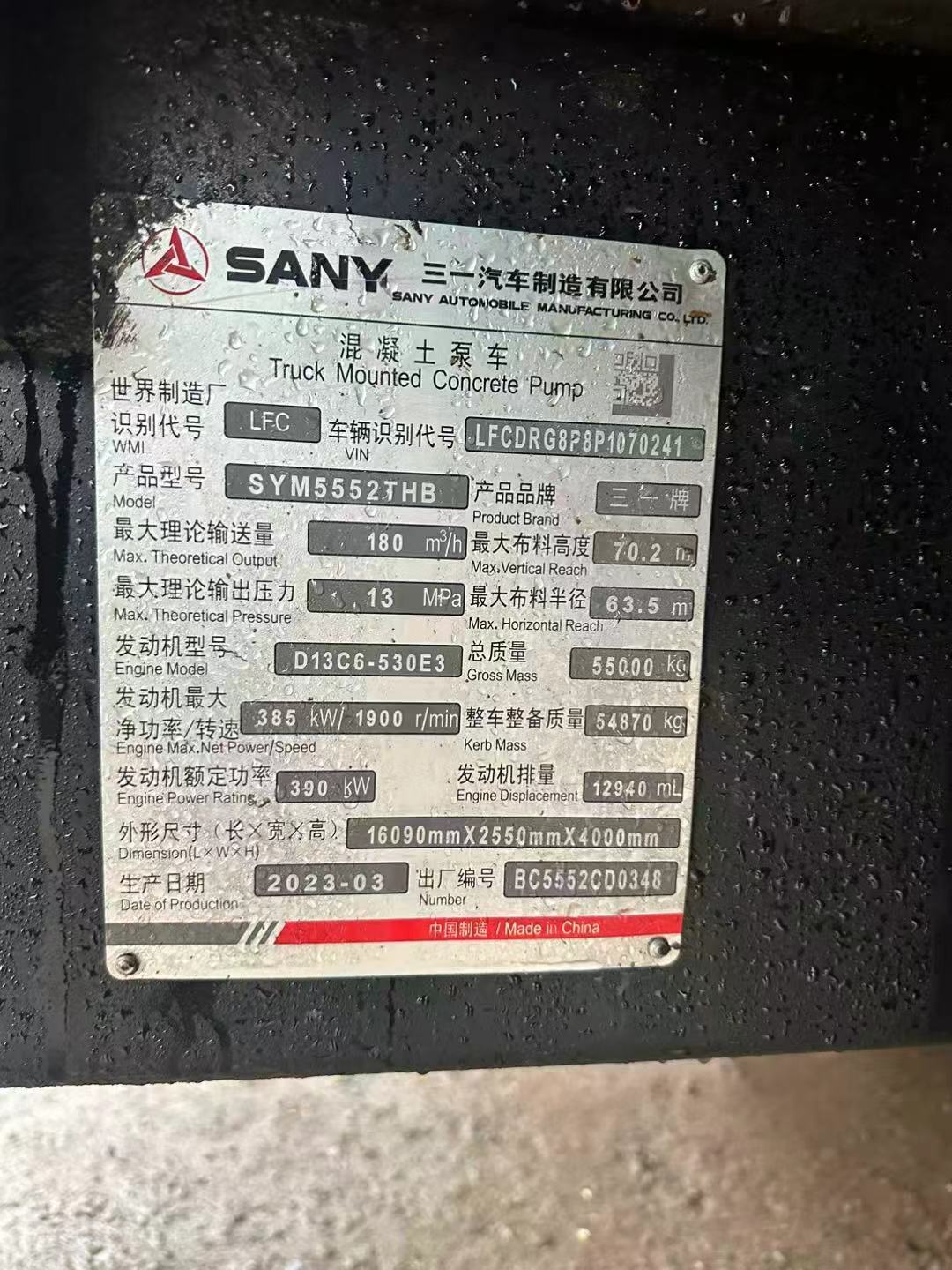 SANY71meterPUMP TRUCK